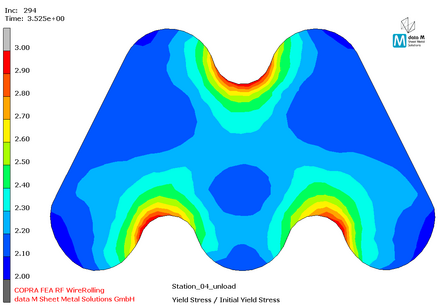 A new post-processing result is available in the 2025.2 version of COPRA® FEA RF WireRolling. The new result calculates and displays the ration between the current yield stress and initial yield stress along the cross section, giving users deeper insights into work hardening effects during the forming process. By visualizing how material strength evolves, users can better assess material behavior and optimize process parameters for improved product quality and performance.
